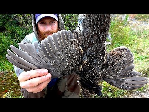 Welcome to Northern Ontario, Canada. This is a roughed grouse. She is aggressively protecting her young. She has them cached in the woods. This is spring, so the hunting season is not yet open. She is calling to her young to re-assemble. Now, in the fall, the young disperse and the hunting season is open. I need to wait until the grouse clears the front of the canoe. If I shoot now, I’ll put a big hole in it. Grouse far up North, are not very pressured and will ‘sit’…